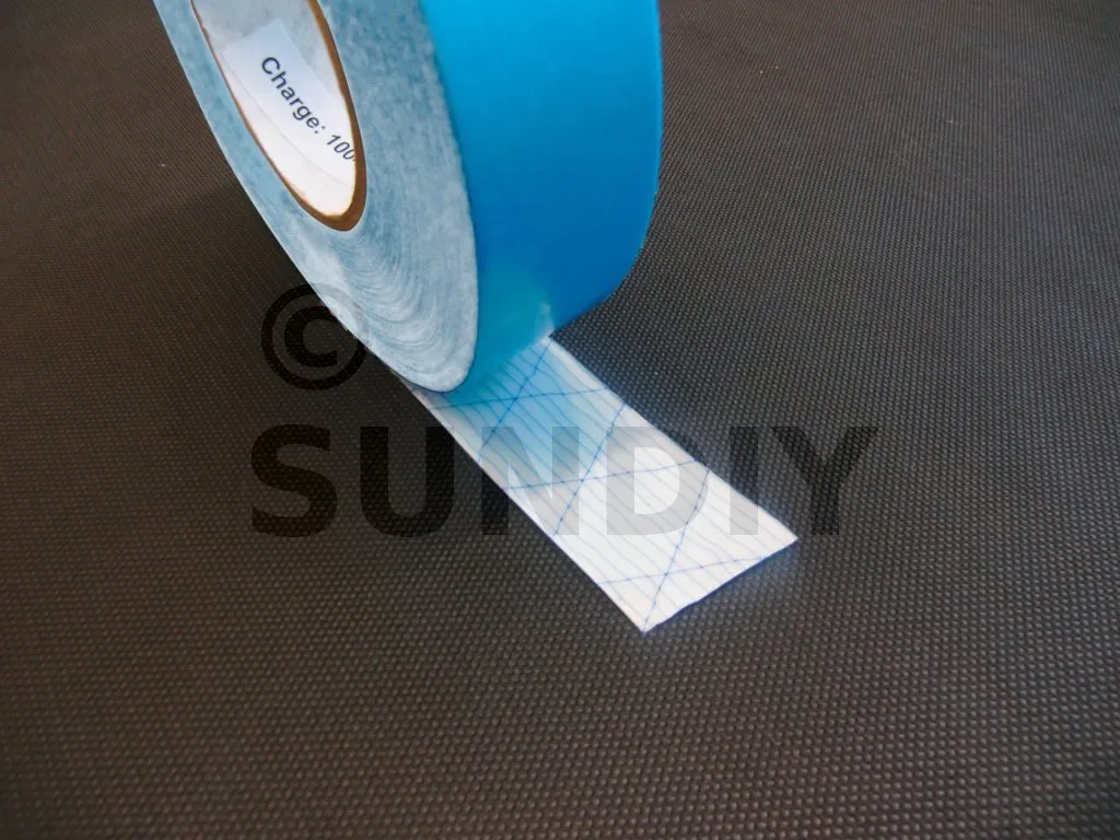 - MaterialBeidseitig mit einer Verstärkung versehenes Acrylharz, kombiniert mit einer abziehbaren Folie.