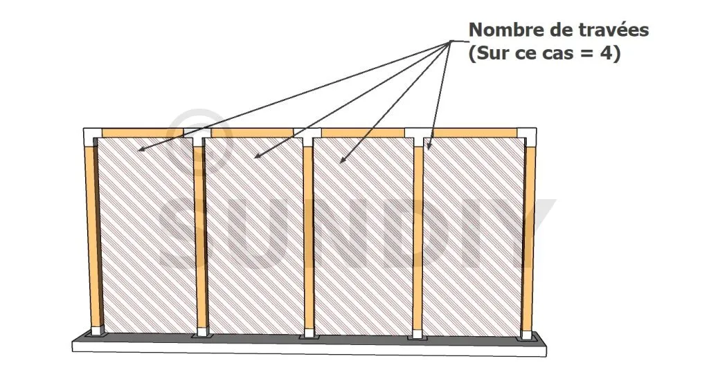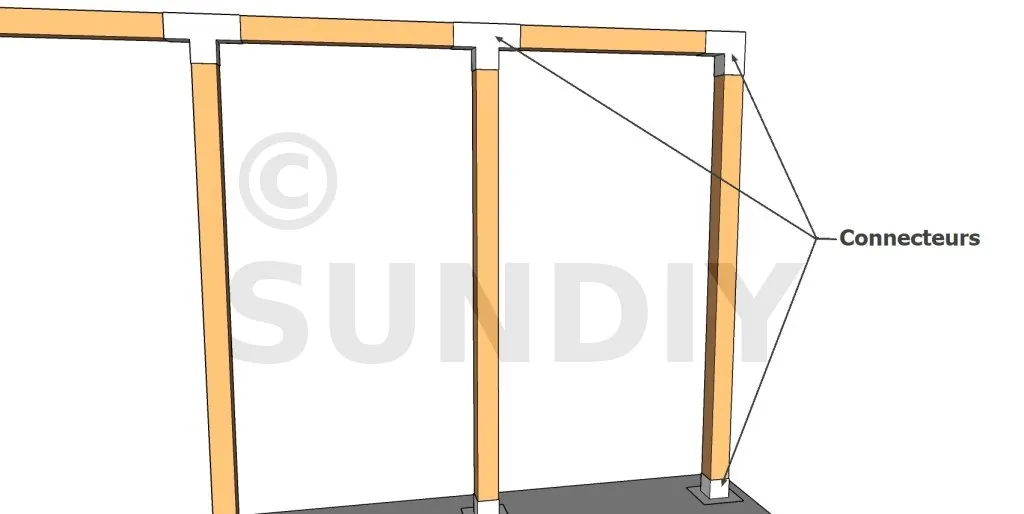 3. stellen Sie den Balkenschuh in Bezug auf die Markierungen ein : der Balkenschuh sollte oben etwas offener sein als unten, um die Installation des Nebenträgers zu erleichtern,