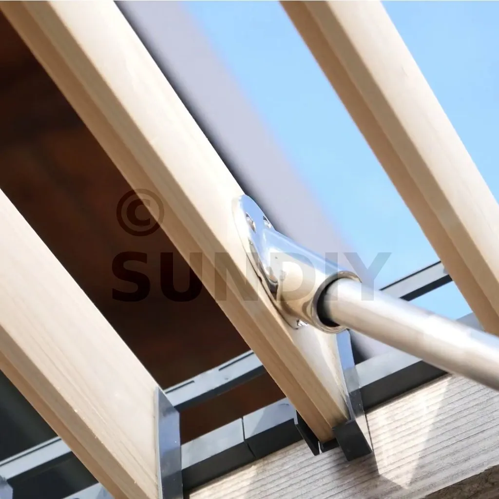 Edehlstahl-Buchstenplatte für die Betätigung der in höhenverstellbaren Lamellen. Die Buchsenplatte ist auf einer Lamelle befestigt und ermöglicht die Aufnahme der abnehmbaren Betätigungsstange. (Die Stange ist in BAUSATZ) geliefert.