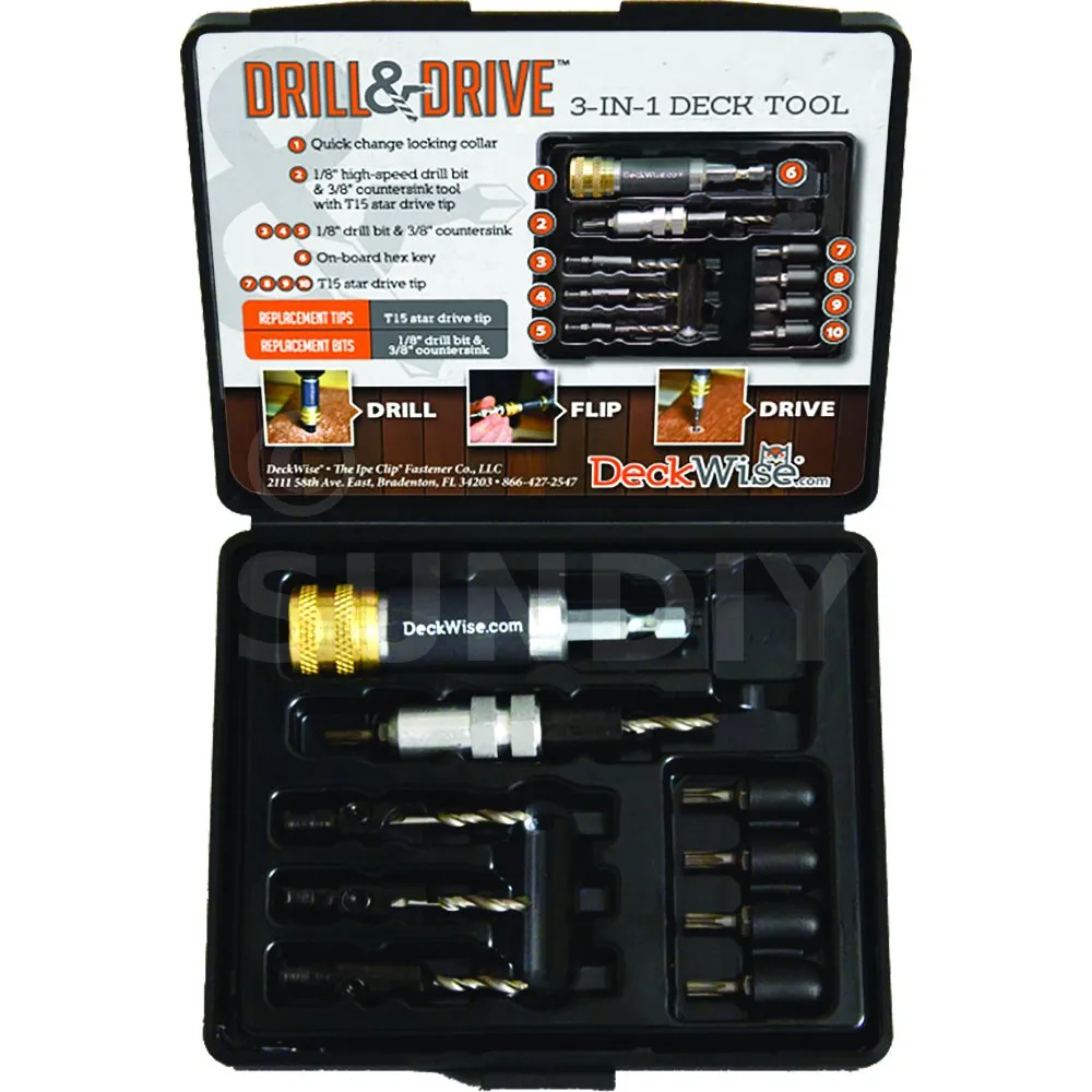 Verwenden Sie es zum VORBOHREN und FRÄSEN von Terrassendielen. Und schließlich zum SCHRAUBEN, ohne den Schraubendreher zu wechseln (es wird nur einer benötigt).