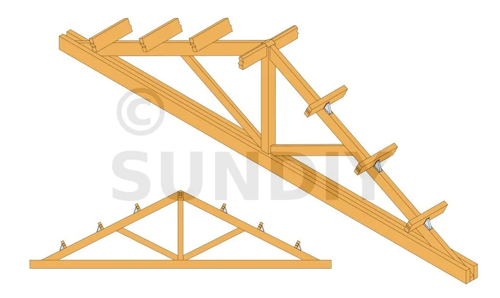 Getragen: Massivholz, Verbundholz, Brettschichtholz, Dreiecksbinder.