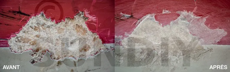 - Mischen Sie die CHOUKROUT Spachtelmasse und den Härter. Nach dem Mischen füllen Sie die zu füllenden Bereiche mit einem Spachtel ein.