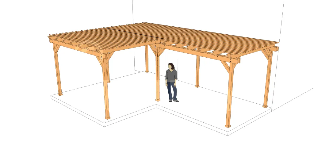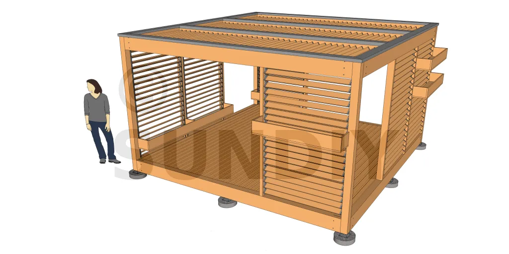 Eine Bibliothek von SKETCHUP-Komponenten "Spezielle Holzkonstruktion" zur schnellen Modellierung Ihrer Pergola
