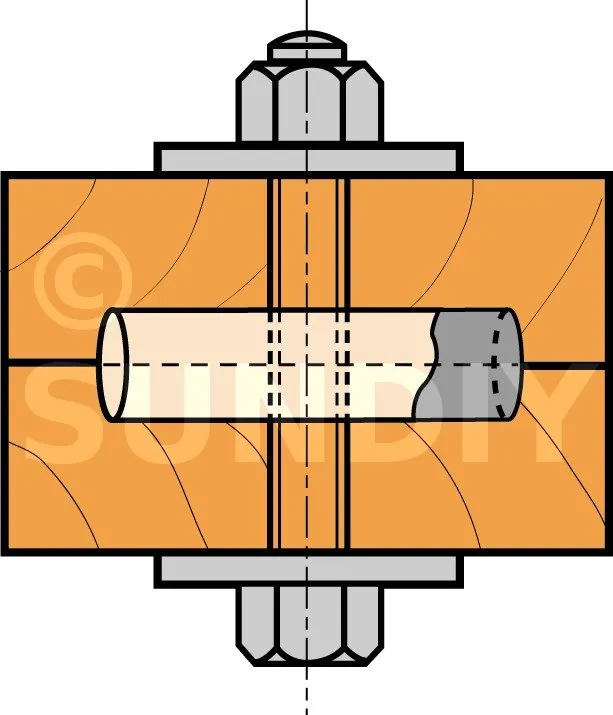 1. Bearbeiten Sie die beiden Holzelemente, indem Sie die kreisförmigen Nuten und die Löcher für den Bolzen anbringen.