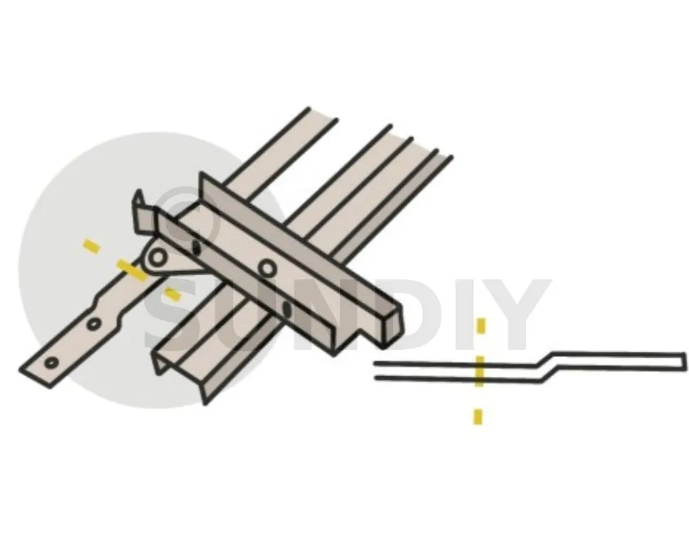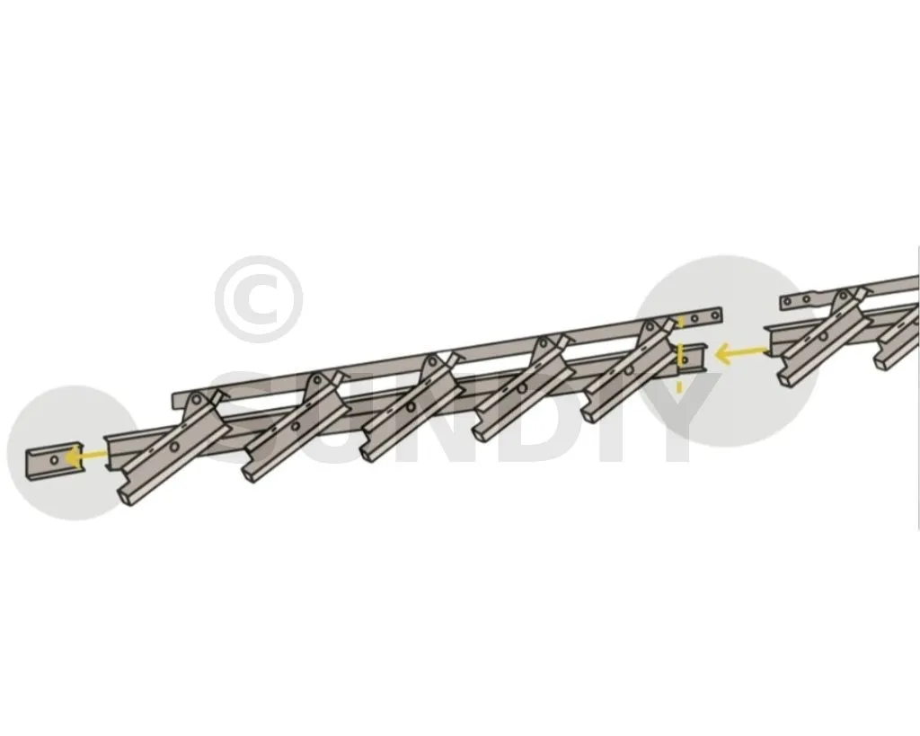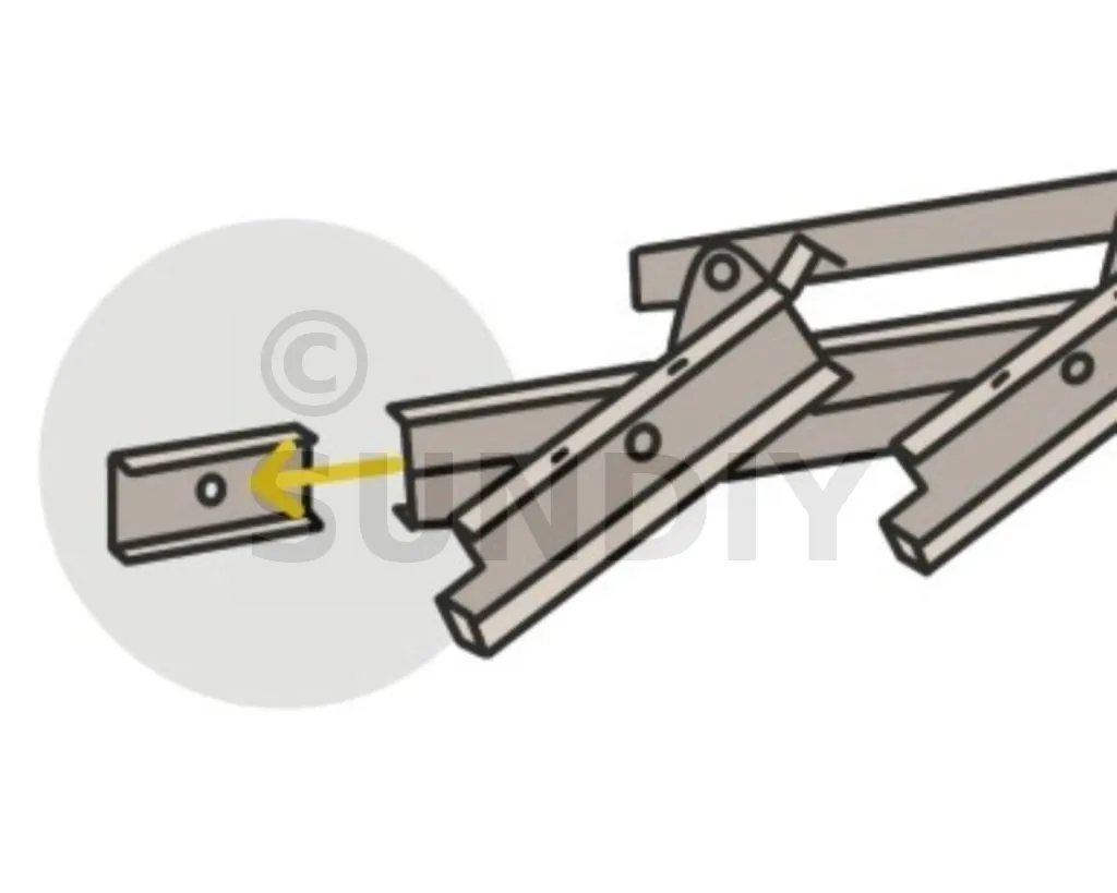 - En quatrième étape : clipsez et faites glisser le mécanisme SUNDIY sur le clips, en laissant 1 mm de jeu entre le début de la structure et le mécanisme (fermé). Mais attention, ce jeu n’est nécessaire que pour le mécanisme de départ de chaque travée.