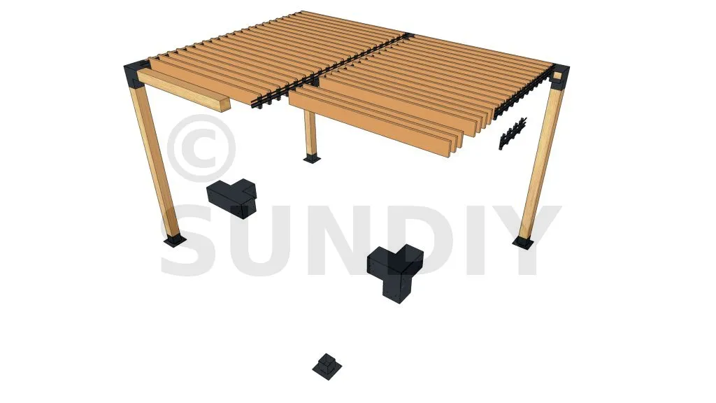 Bei dieser Lösung werden die bisherigen 1-m-Lamellen und die Standardmechanik von SUNDIY durch 2-m-Douglas-Lamellen und die SUNDIY-XL-Mechanik ersetzt. Durch die längeren Lamellen reduziert sich die Anzahl der Dachfelder auf zwei, allerdings steigt dadurch das Risiko einer Verformung der Lamellen.