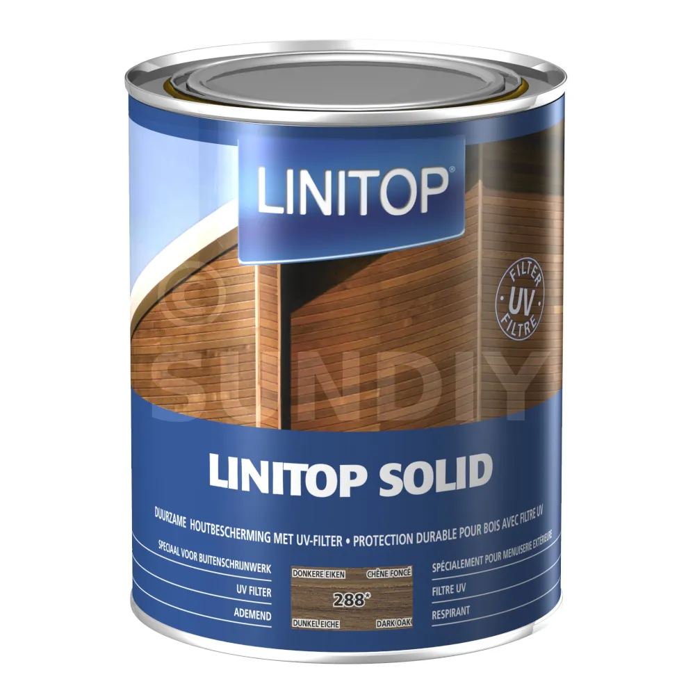 LINITOP SOLID ist eine "Hochleistungs"-Dekorbeize mit einem UV-Filter der neuen Generation, der einen UV-Absorber gekoppelt mit einem Stabilisator (UV-Barriere) enthält. Es wird auf maßhaltiges Holz aufgetragen.