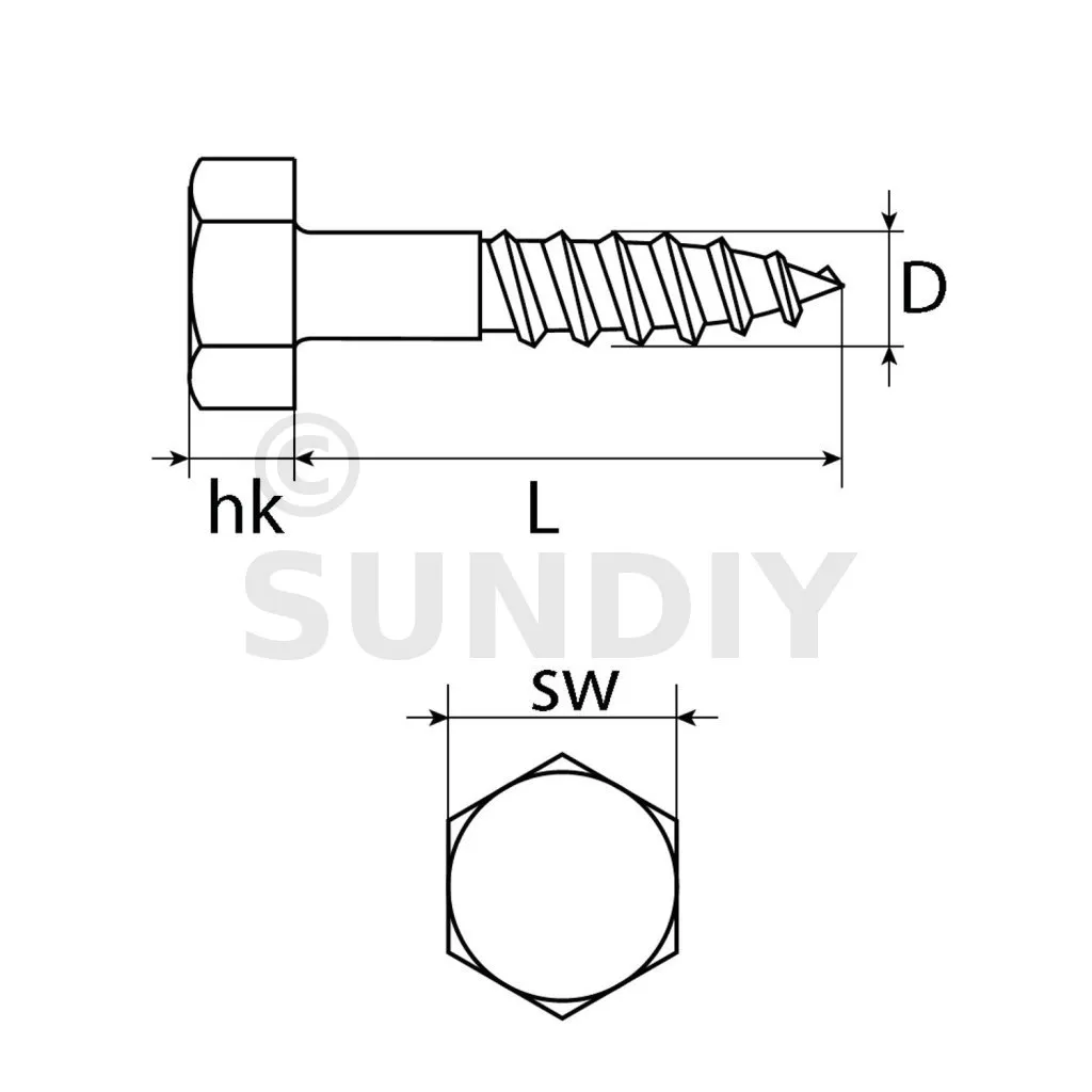 - Schraubentyp: Sechskant-Holzschraube.