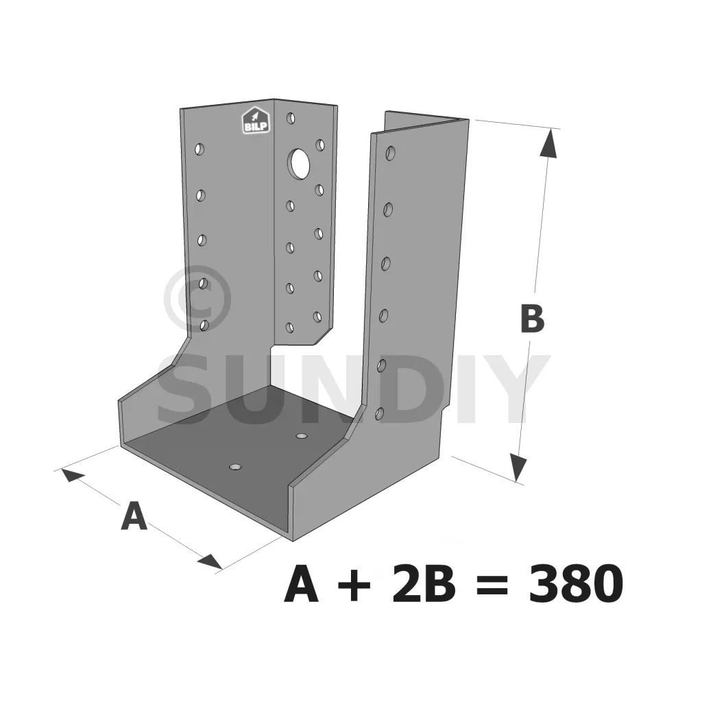 Große Balkenschuhe mit innenliegenden Schenkeln, Baureihe GLI ECONOMIC (Größe 380mm, Dicke 2.5mm, Tiefe 90mm) - Réf. GLI380/2.5X