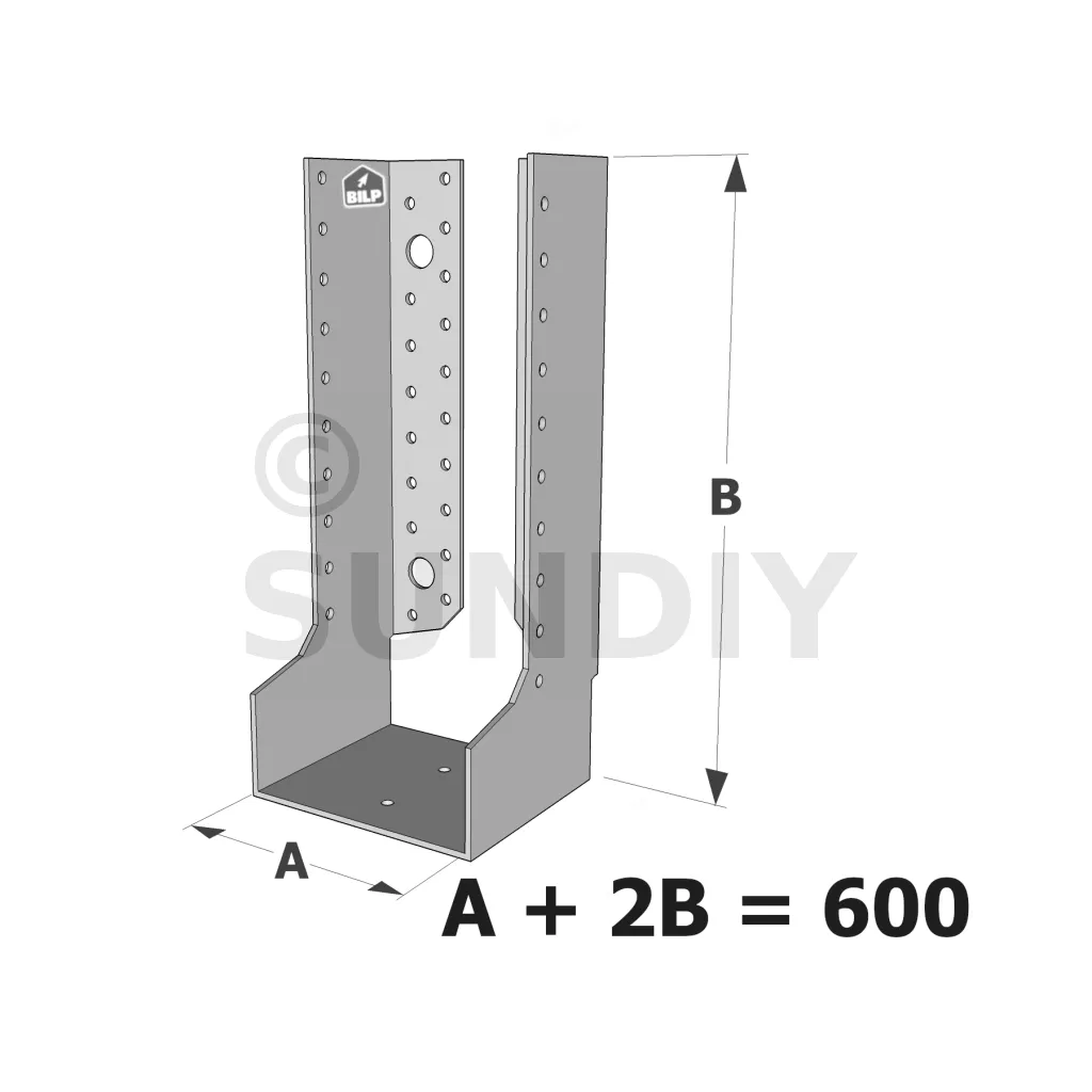 Große Balkenschuhe mit innenliegenden Schenkeln, Baureihe GLI ECONOMIC (600 mm Breite, 2,5 mm Dicke, 90 mm Tiefe) - Réf. GLI600/2.5X