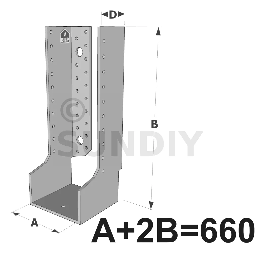 Große Balkenschuhe mit innenliegenden Schenkeln, Baureihe GLI ECONOMIC (Größe 660mm, Dicke 4mm, Tiefe 90mm) - Réf. GLI660/4X