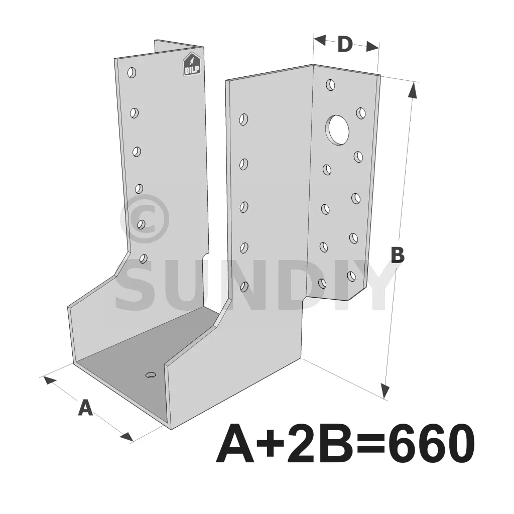 Große Balkenschuhe mit außenliegenden Schenkeln, GLE-Sortiment ECONOMIC (Größe 660mm, Dicke 2.5mm, Tiefe 90mm) - Réf. GLE660/2.5X