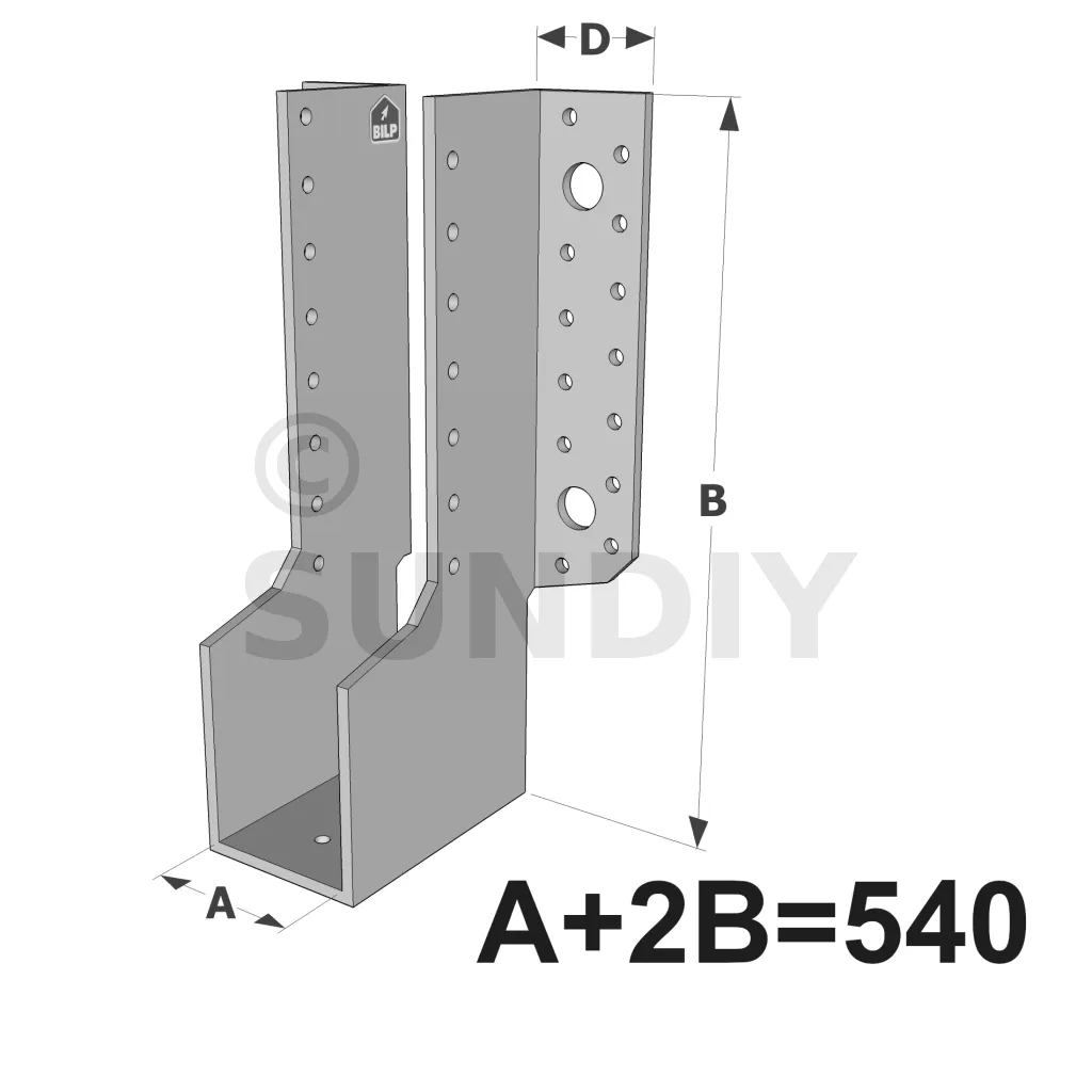 Große Balkenschuhe mit außenliegenden Schenkeln, ECONOMIC GLE-Sortiment (Größe 540mm, Dicke 4mm, Tiefe 90mm) - Réf. GLE540/4X