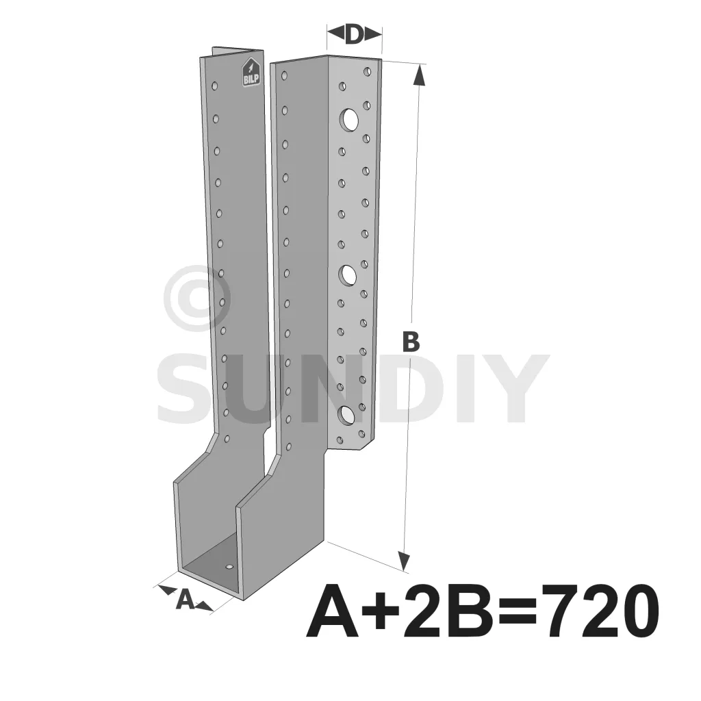 Große Balkenschuhe mit außenliegenden Schenkeln, ECONOMIC GLE-Sortiment (Größe 720mm, Dicke 4mm, Tiefe 90mm) - Réf. GLE720/4X