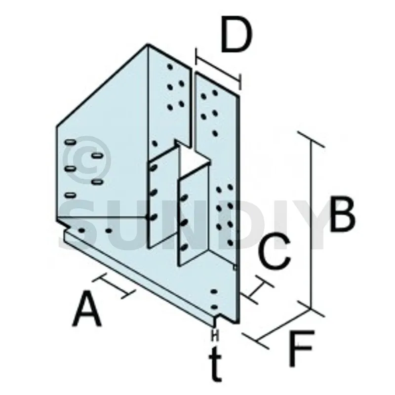 | A | B | C | D | F | t | Ø5 [mm] | Ø13 [ mm] | Ø5 [mm] | Ø5 x 7,5 [mm] | Ø5 [mm] | |