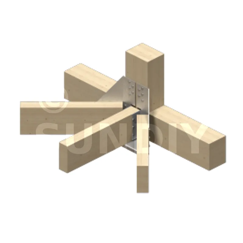 Die Achsabstände und Randabstände müssen gemäß den Regeln des Eurocode 5 für die Gruppe von 10 Punkten im oberen Teil des Bügels überprüft werden, abhängig von der Dicke der Stütze und der Abmessung des vertikalen Elements. Auch die Verwendung eines 147 mm dicken Trägers ist zu prüfen.