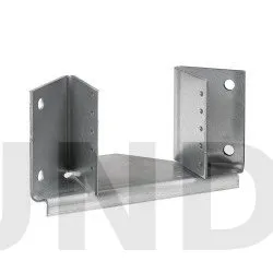 Dieser Balkenschuh ermöglicht die Aufnahme von Dachbindern in gemauerten Ecken mit einem Winkel von 90°. Er ist in der Breite wahlweise zwischen 76 und 150 mm faltbar und in der Breite 38 mm erhältlich.