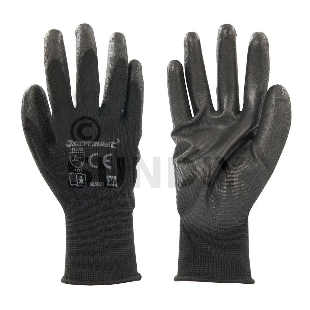 13-Gauge-Strickhandschuhe mit Polyurethan-verstärkter Handfläche und Fingern. Belüfteter Rücken, damit die Haut atmen kann und die Ermüdung reduziert wird. Bieten perfekte Fingerfertigkeit. Zwischenzeitliche Risiken. Ideal für Arbeiten im Automobilbereich oder in der Elektronik und für die Handhabung kleiner Komponenten.
