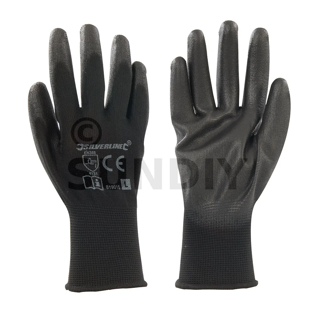 13-Gauge-Strickhandschuhe mit Polyurethan-verstärkter Handfläche und Fingern. Belüfteter Rücken, damit die Haut atmen kann und die Ermüdung reduziert wird. Bieten perfekte Fingerfertigkeit. Zwischenzeitliche Risiken. Ideal für Arbeiten im Automobilbereich oder in der Elektronik und für die Handhabung kleiner Komponenten.