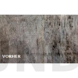 - Nachdem das gewünschte Ergebnis erzielt wurde, muss die Behandlung durch eine Auslaugung mit SOAPCLEAN in einer Dosierung von 4 Kappen in 10 Liter Wasser neutralisiert werden.