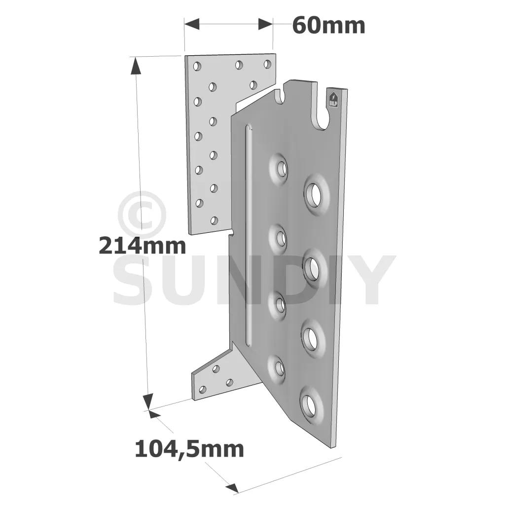 | Artikel | Abmessungen des Trägers [mm] | Abmessungen des Holzträgers [mm] | Abmessungen [mm] | Bohrungen auf Träger | Bohrungen auf den Nebenträger | ||||||||