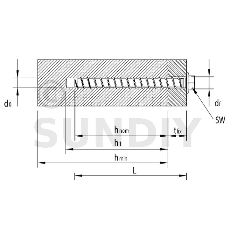 - Durchmesser der Durchgangsbohrung im zu befestigenden Element,df9mm