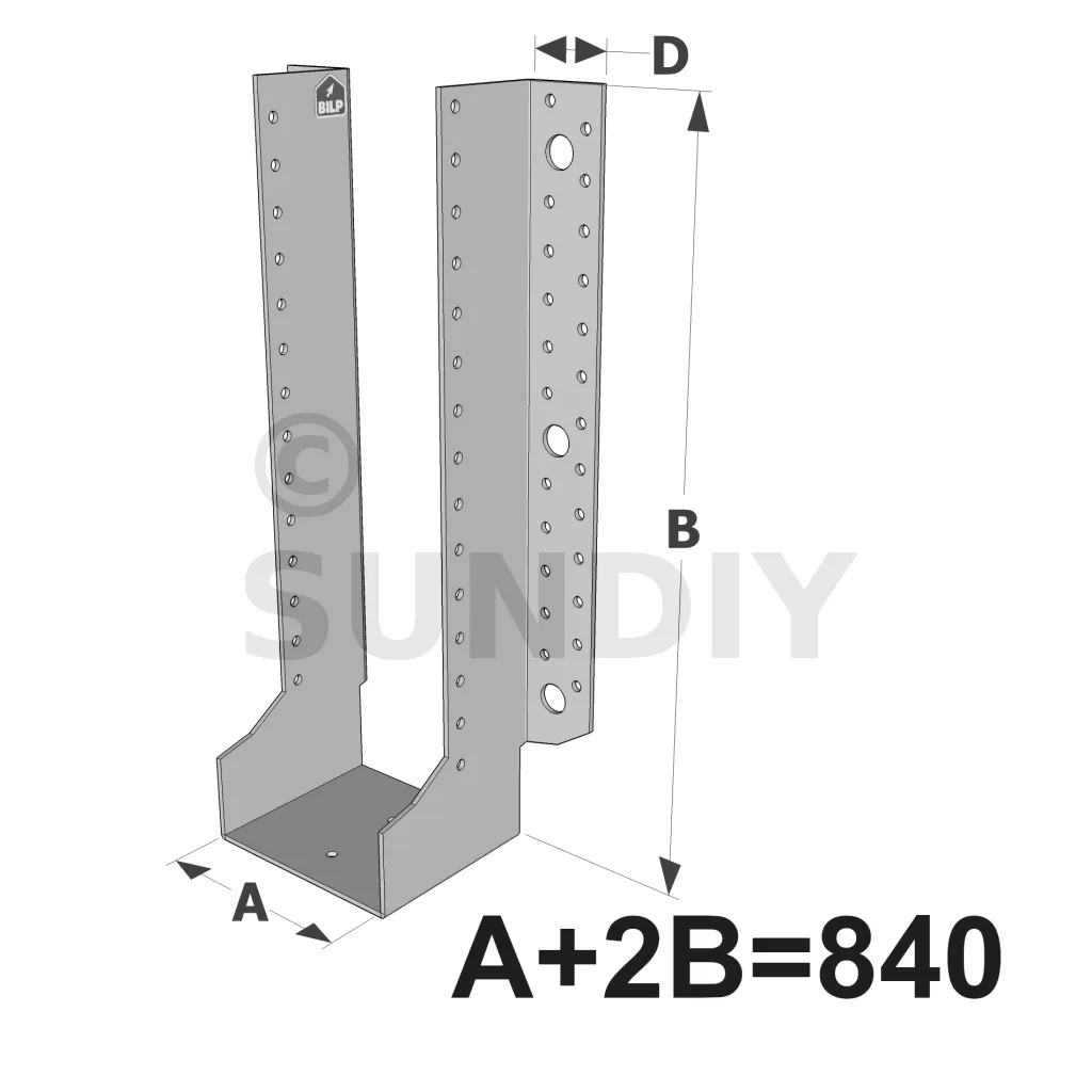 Große Balkenschuhe mit außenliegenden Schenkeln, ECONOMIC GLE-Sortiment (Größe 840mm, Dicke 2.5mm, Tiefe 90mm) - Réf. GLE840/2.5X