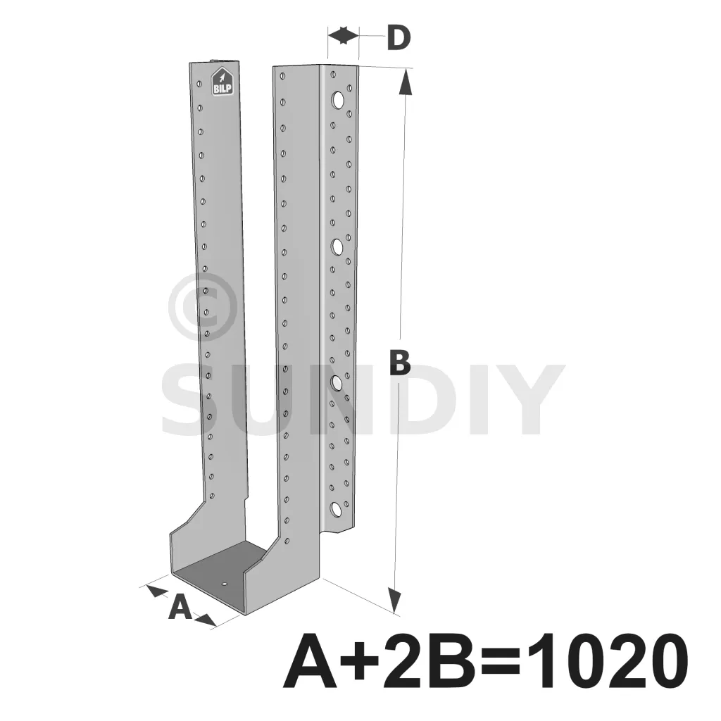 Große Balkenschuhe mit außenliegenden Schenkeln, ECONOMIC GLE-Sortiment (Größe 1020mm, Dicke 2.5mm, Tiefe 90mm) - Réf. GLE1020/2.5X