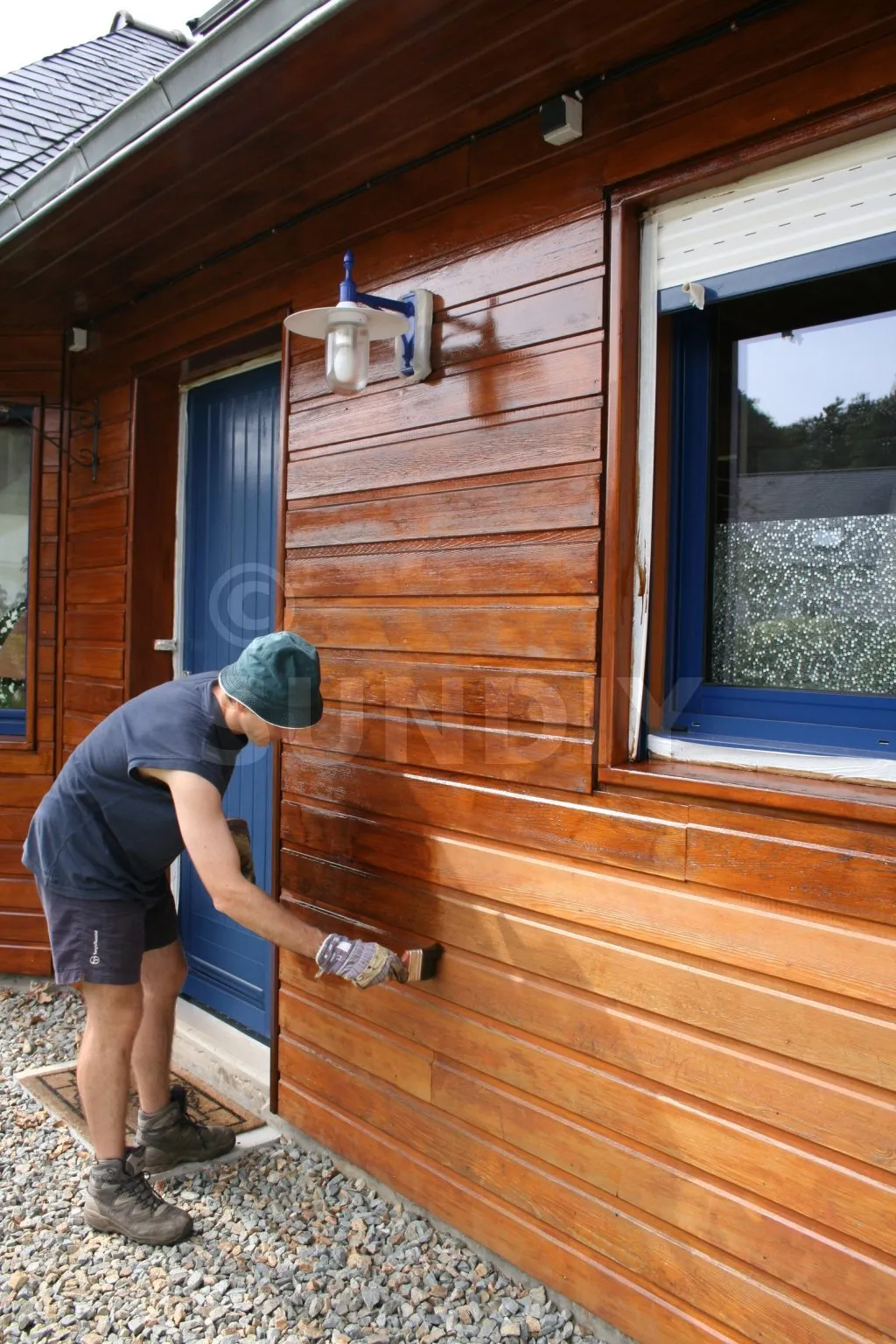 - Schützt und dekoriert Türen, Rahmen, Fenster, Balken, Verkleidungen usw. aus Holz mit Ausnahme von Rotzeder und Arten, die ein Antioxidans enthalten (z. B. Iroko). Vermeiden Sie harzreiche Hölzer.