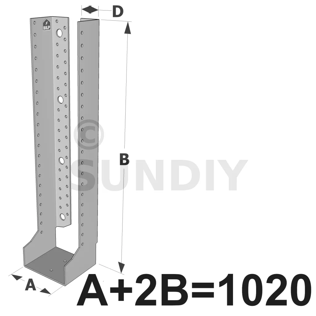 Große Balkenschuhe mit innenliegenden Schenkeln, Baureihe GLI ECONOMIC (1020 mm Breite, 2,5 mm Dicke, 90 mm Tiefe) - Réf. GLI1020/2.5X-AL