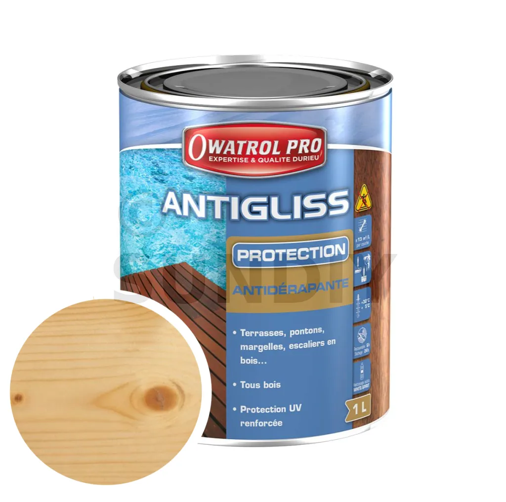 - Enthält rutschhemmende Mikroperlen auf Basis von mikronisiertem Polypropylenwachs (Partikelgröße : 100 Mikrometer).