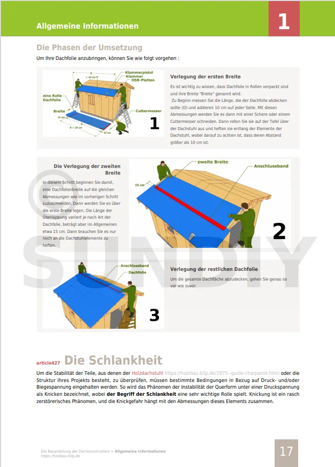 Die Bauanleitung zur Dachkonstruktion, zum HERUNTERLADEN