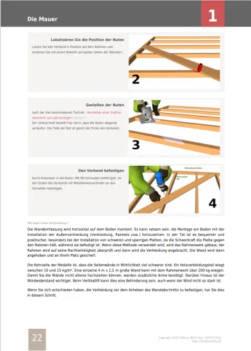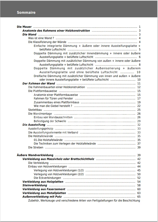 Um einen Unterstand zu bauen, der auf lange Zeit Bestand hat, muss eine gute bauliche Planung durchgeführt werden. Es gibt keinen Raum für Improvisation. Diese Anleitung ermöglicht es Ihnen, alle Konstruktionselemente (Schnitt, Spannweite, Baugruppen usw.) wie ein Profi zu bestimmen, jedoch mit einer Methode, die für alle zugänglich ist : Wandrahmen, Dach und Dachkonstruktion, Treppe, Außenwandverkleidung usw. Es werden zahlreiche Umsetzungstipps, Tricks und Tipps von Fachleuten verraten.