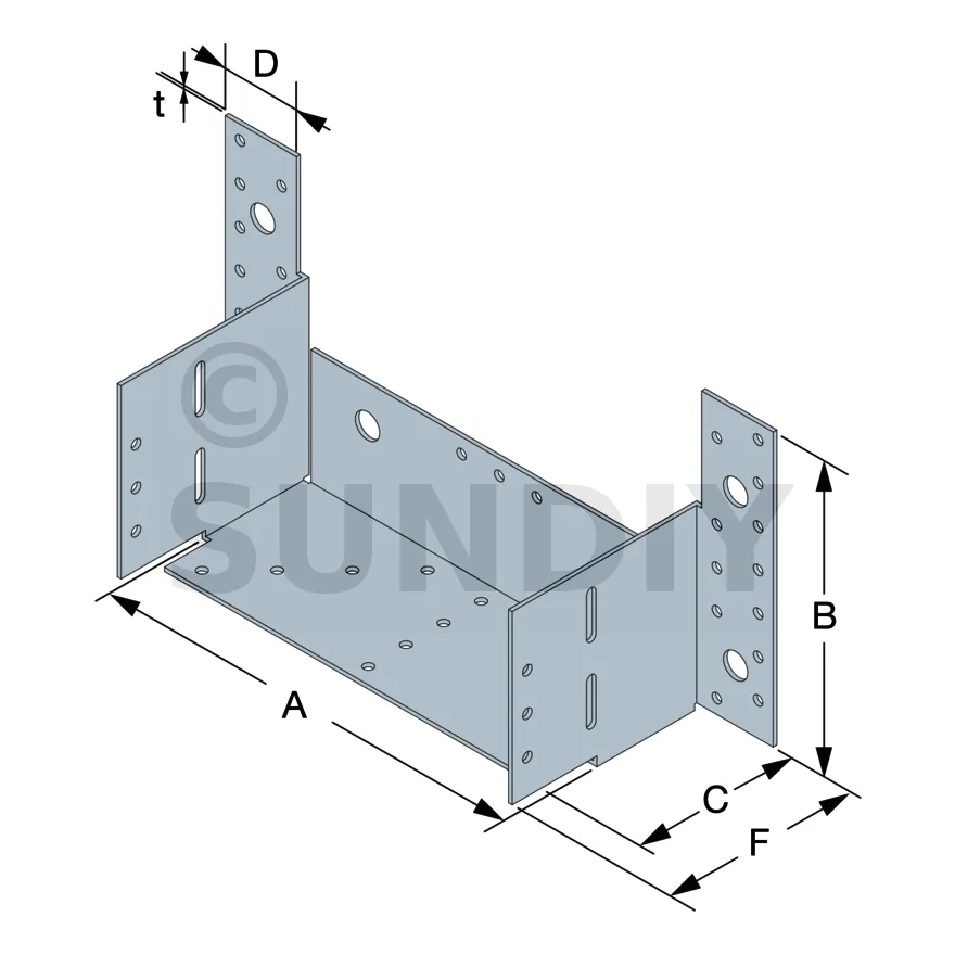 - Bohrungen auf dem HauptträgerSeitenwände : 6Ø5; 8Ø5x7.5 - Boden : 10Ø5