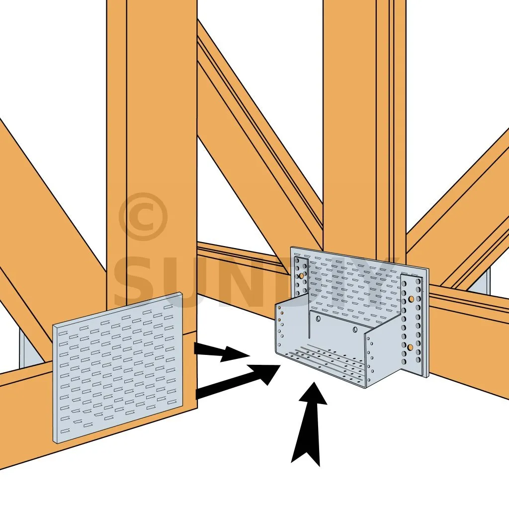 - Befestigung von Dachbindern zur Herstellung von Walmdächern.