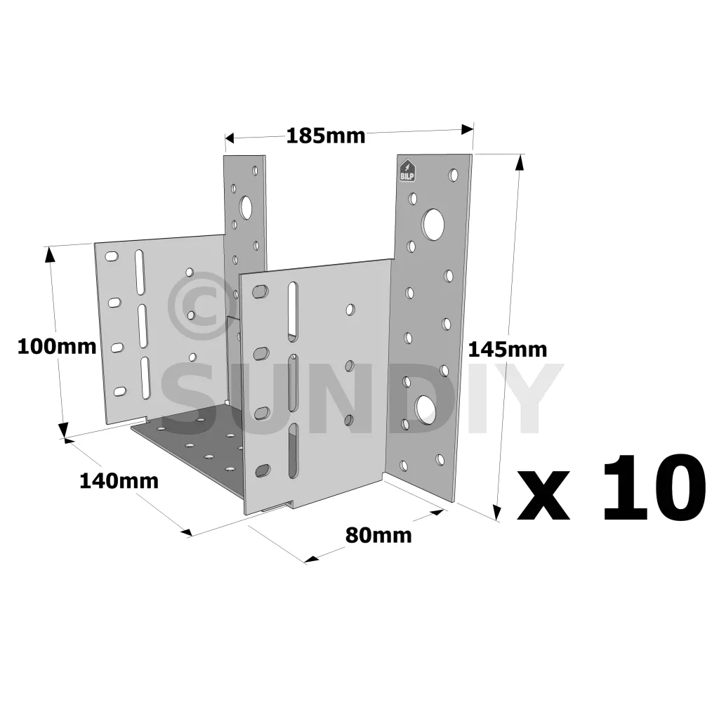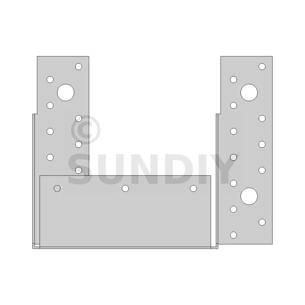 - Bohrungen auf dem HauptträgerSeitenwände : 6Ø5; 8Ø5x7.5 - Boden : 10Ø5