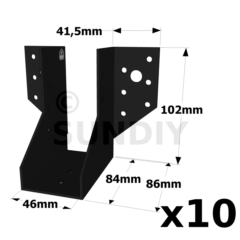 Balkenschuh mit außenliegenden Schenkeln, Schwarze Ausführung (Dicke 2mm, Tiefe 84mm) - Réf. SAE250/46/2PB_10