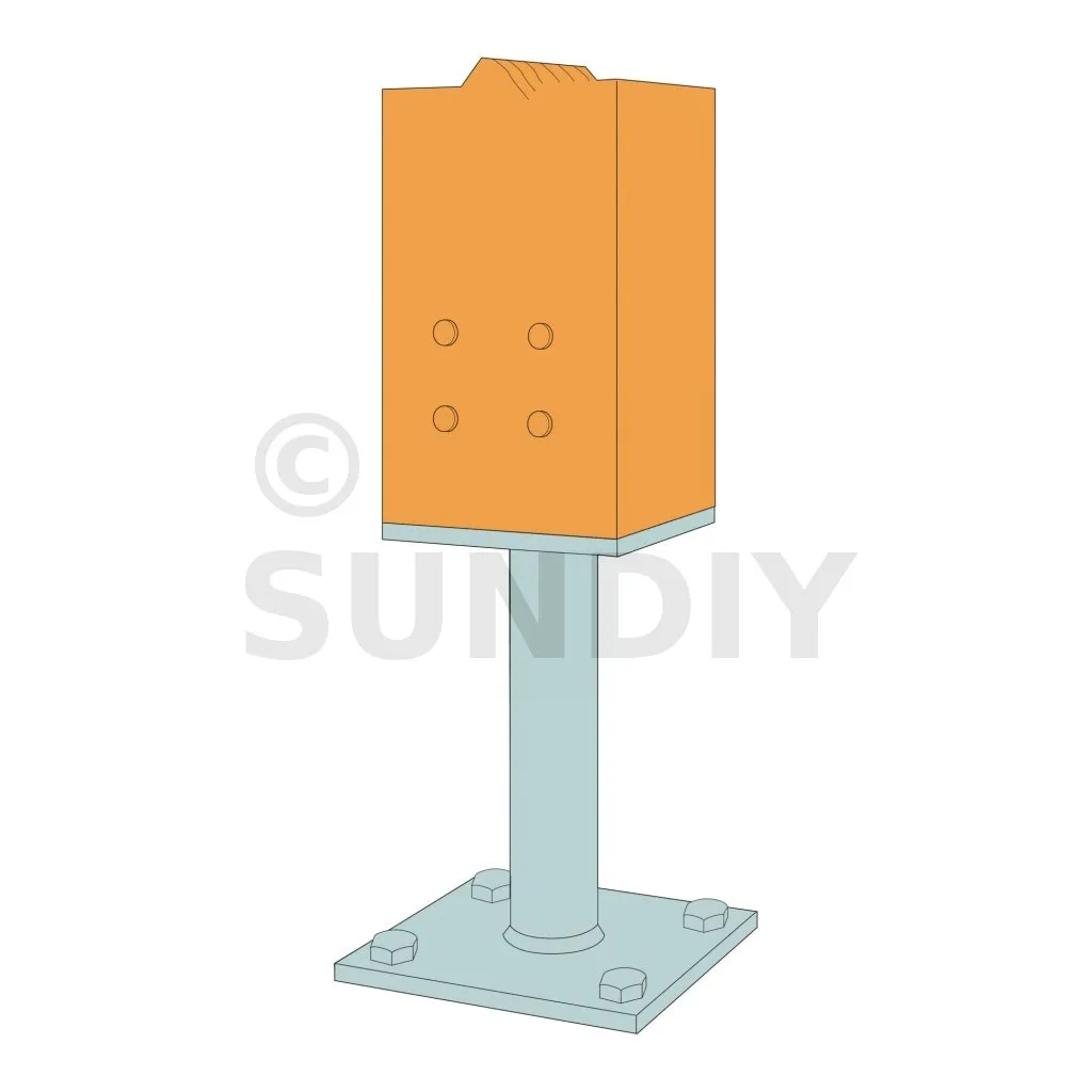 4. Den Pfosten auf dem Pfostenfuß positionieren und die Stabdübel einsetzen.