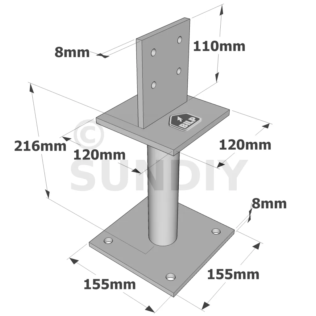 Fester Pfostenfuß Schwerlast PBH - Réf. PBH120G