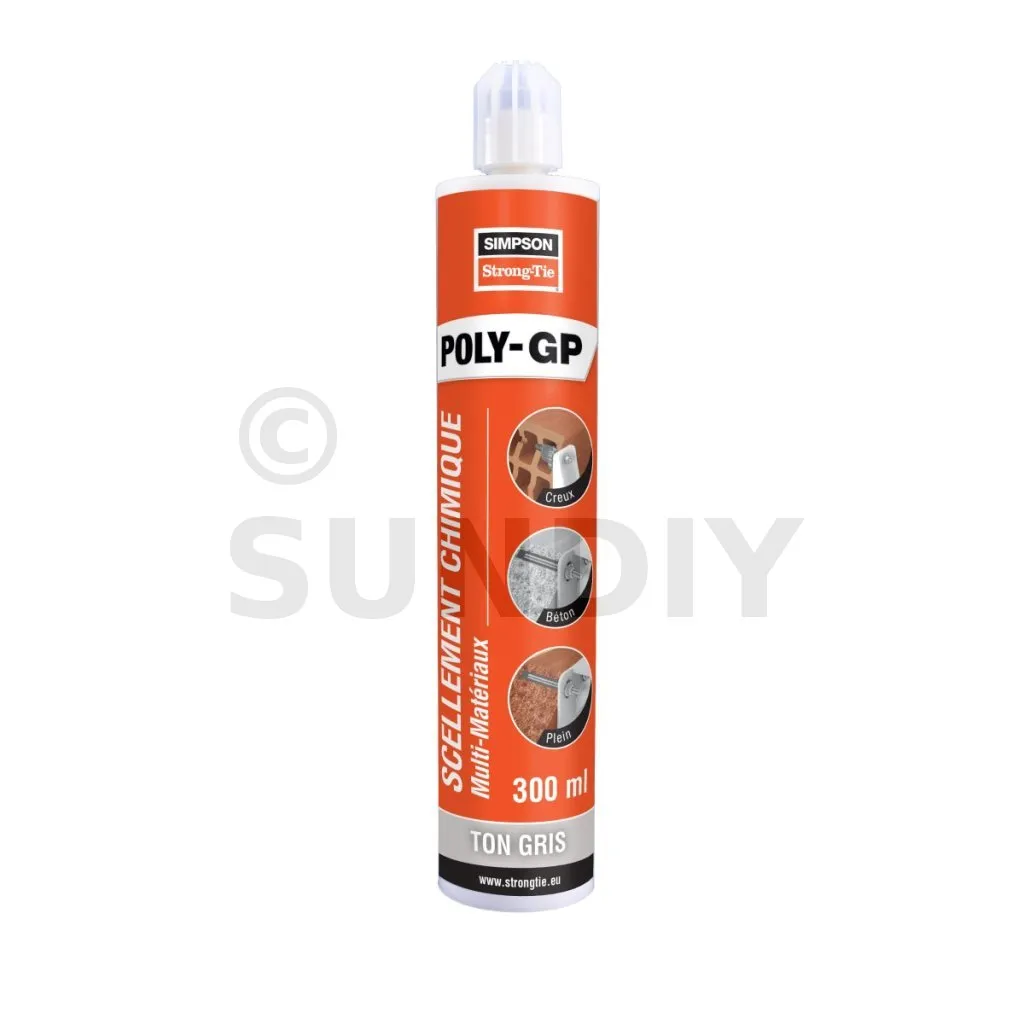 POLY-GP Multimaterialverbundmörtel ist ein chemischer Dübel zur Befestigung von Gewindestangen in Beton C20/C25 bis C50/60 und allen Hohl- und Vollmauerwerken.