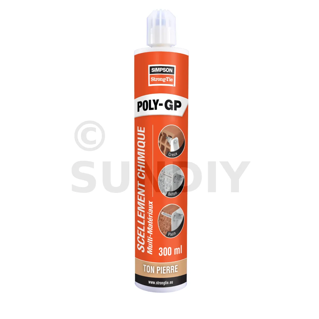 POLY-GP Multimaterialverbundmörtel ist ein chemischer Dübel zur Befestigung von Gewindestangen in Beton C20/C25 bis C50/60 und allen Hohl- und Vollmauerwerken.
