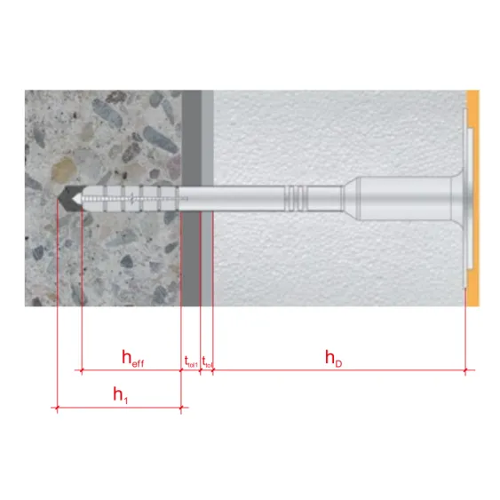 - hef: Verankerungstiefe (Die betreffenden Referenzen sind den Produktblättern zu entnehmen.)