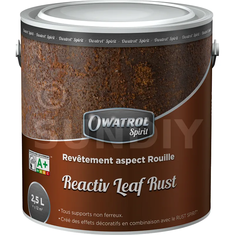 Verleihen Sie Ihren Wänden und anderen Oberflächen einen rostigen Look für einen moderneren und eleganteren Touch mit der Beschichtung Reactiv Leaf Rust, die in Kombination mit dem Aktivator Rust Spirit verwendet wird.