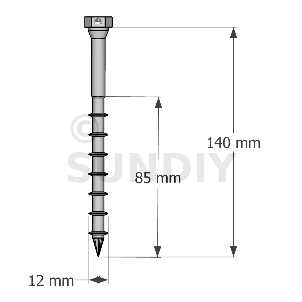 - Sechskantkopf : perfekter Halt der Stahlplatte auf Holz dank seines breiten Kopfes,