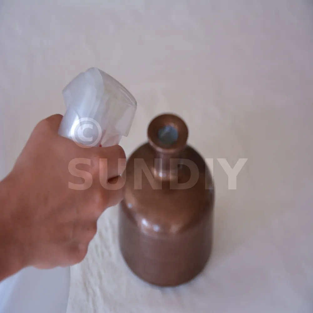 1- BRONZE COPPER SPIRIT auf gesunde, trockene und saubere Oberflächen auftragen. Diese Anwendung kann mit dem Sprühgerät oder mit einem Werkzeug (Tuch, Pinsel, Schwamm,...) erfolgen, wodurch zusätzliche dekorative Effekte erzielt werden können.