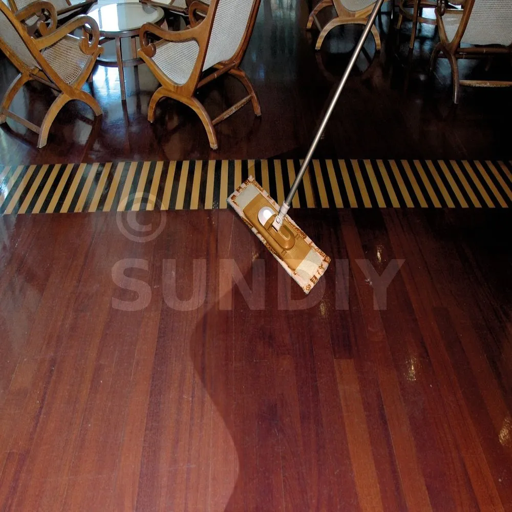 - Parkettböden im Innenbereich : Mit einem gut ausgewrungenen Mikrofasertuch auftragen, um Pfützenbildung zu vermeiden. Lassen Sie trocken. Erfordert keine Spülung.