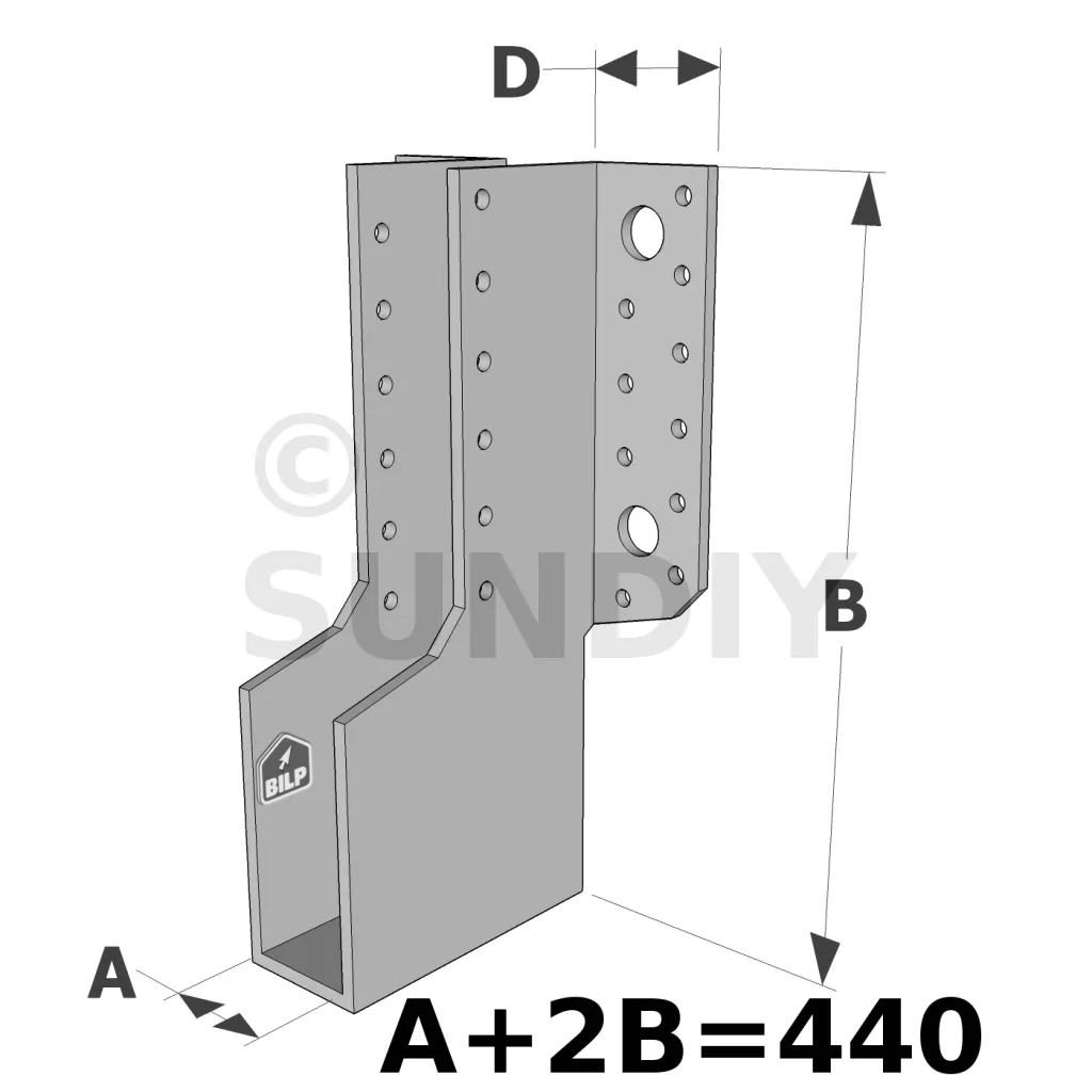 Große Balkenschuhe mit Außenliegenden Schenkeln, Reihe ECONOMIC GLE (Größe 440 mm, Dicke 4 mm, Tiefe 90 mm) - Réf. GLE440/32/4