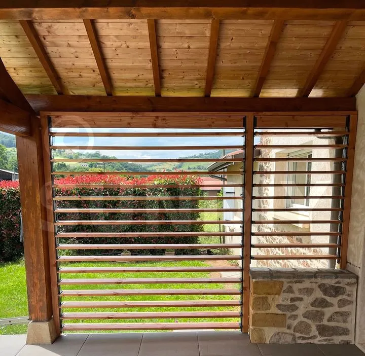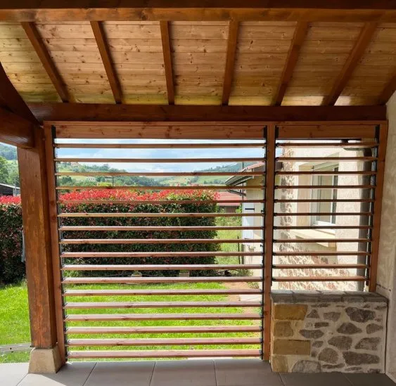Genießen Sie Schatten und Stil mit unserem Lamellen-Sonnenschutz aus Holz
