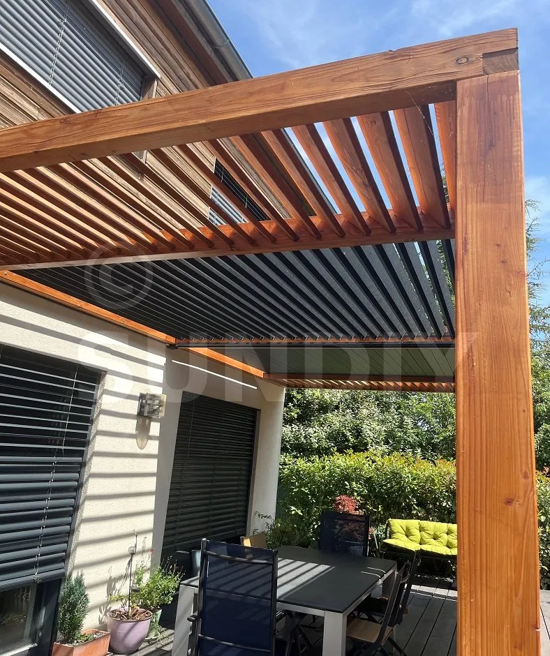 Das SUNDIY-Kit ermöglichte es mir, dieses Projekt selbst zu realisieren, und ich bin begeistert vom Ergebnis! Ich habe mich für anthrazitgraue Aluminiumlamellen in der Mitte und feste Holzlamellen an den Enden entschieden, was einen harmonischen Kontrast schafft. Der Aufbau war einfach, und die Materialien sind von sehr guter Qualität.