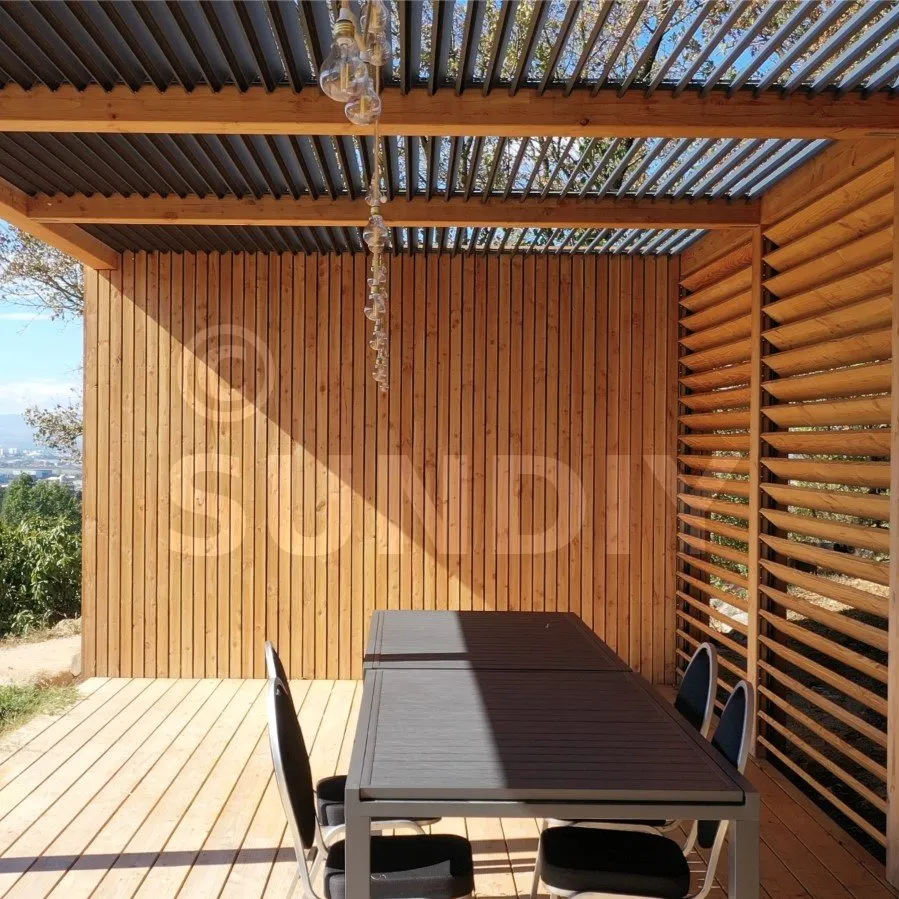 Er ist mit SUNDIY- und Standardlamellen (Holz oder Aluminium) kompatibel – für maximale Gestaltungsfreiheit und zusätzliche Einsparungen.